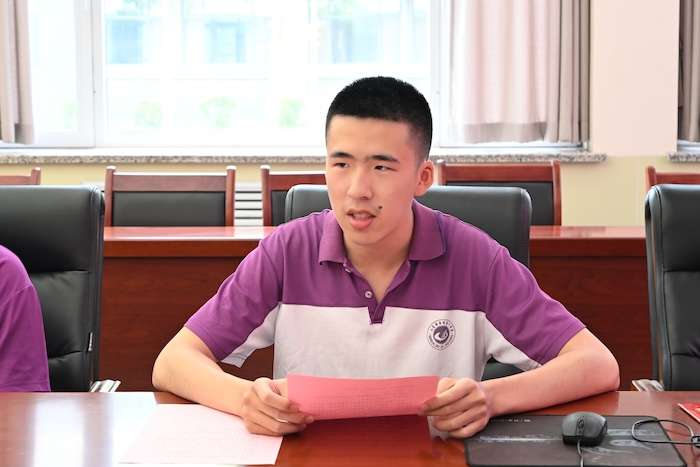 颁发仪式上,张奇广宣读了奖学金获奖名单及录取院校,赵新团和王波为获奖学生颁发奖学金。随后,鞠睿阳代表获奖学生发言,感谢金晶集团、学校和老师们的关心与支持,并表示将秉承“博爱、博学、博雅”的校训,不断努力,不懈奋斗,不辜负学校和老师的重托,不辜负家乡和社会的期望,用自己之所学回报国家,服务人民。
