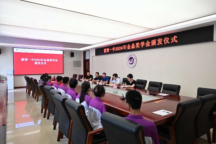 8月12日下午,淄博一中2024年金晶奖学金颁奖仪式在博学楼会议室举行。金晶集团办公室主任赵新团,学校党委副书记、校长王波,党委委员、副校长张奇广和2021级年级领导小组参加活动。会议由年级主任胡文主持。