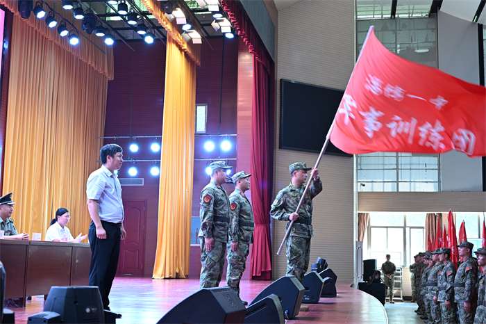 开训仪式在庄严的国歌声中拉开序幕。博山区人武部部长徐兴文对受训学生提出了希望和要求,让同学们珍惜宝贵的军训机会,在日常训练中磨炼意志品质,在服从命令中明白组织纪律,在“摸爬滚打”中学会艰苦奋斗,在关心互助中感受团结友谊。教官代表李超上台表态,表示将以良好的军人形象、过硬的军事本领引导大家,提升学生的军事理论水平和技能;学生代表邵思源表示,会全力以赴完成军训任务,在军训舞台上绽放青春风采;席云丽宣读《淄博一中关于评选2024年军训工作先进班集体、军训标兵的意见》。最后,王波为军训团授旗,军训活动正式拉开序幕。