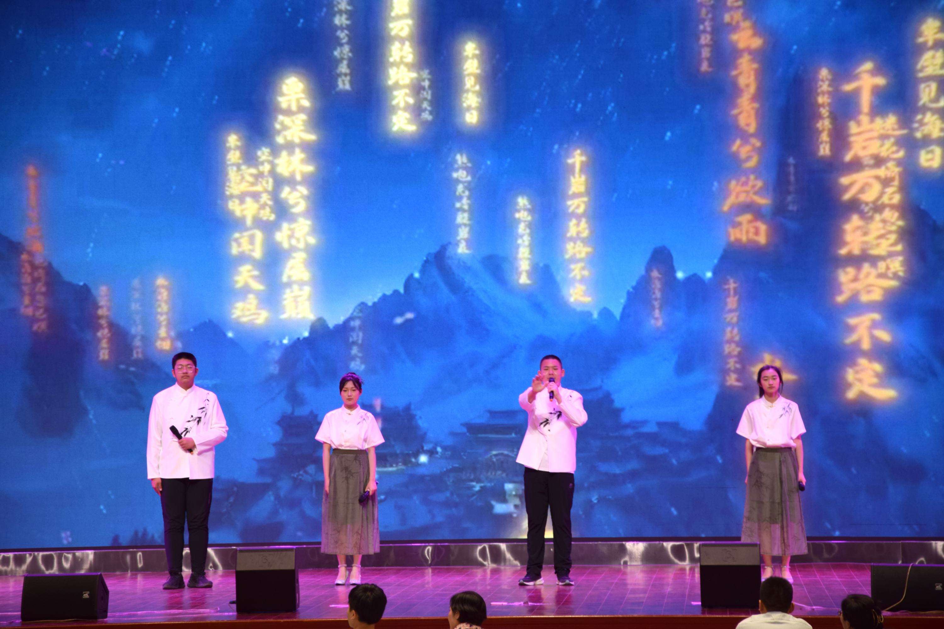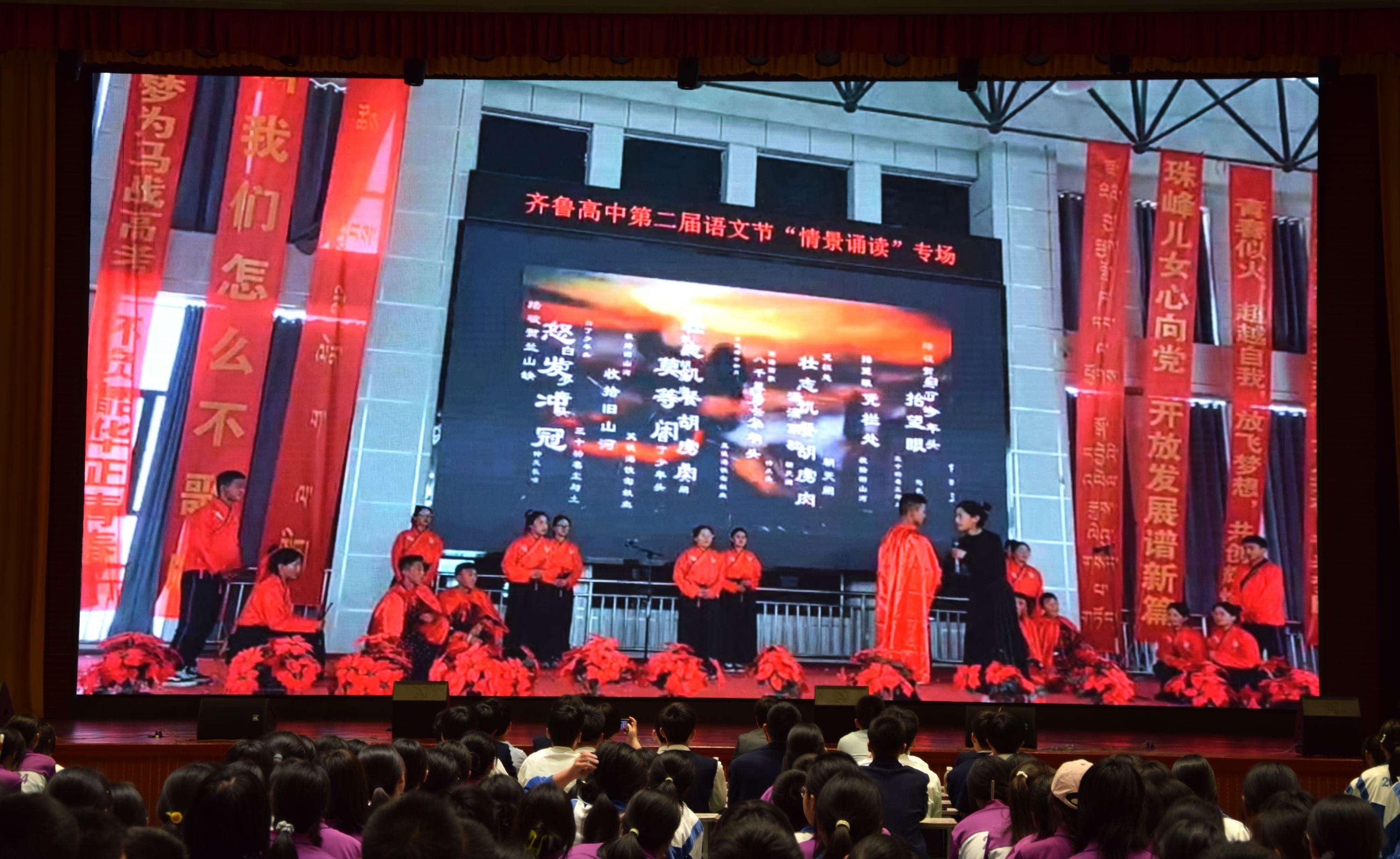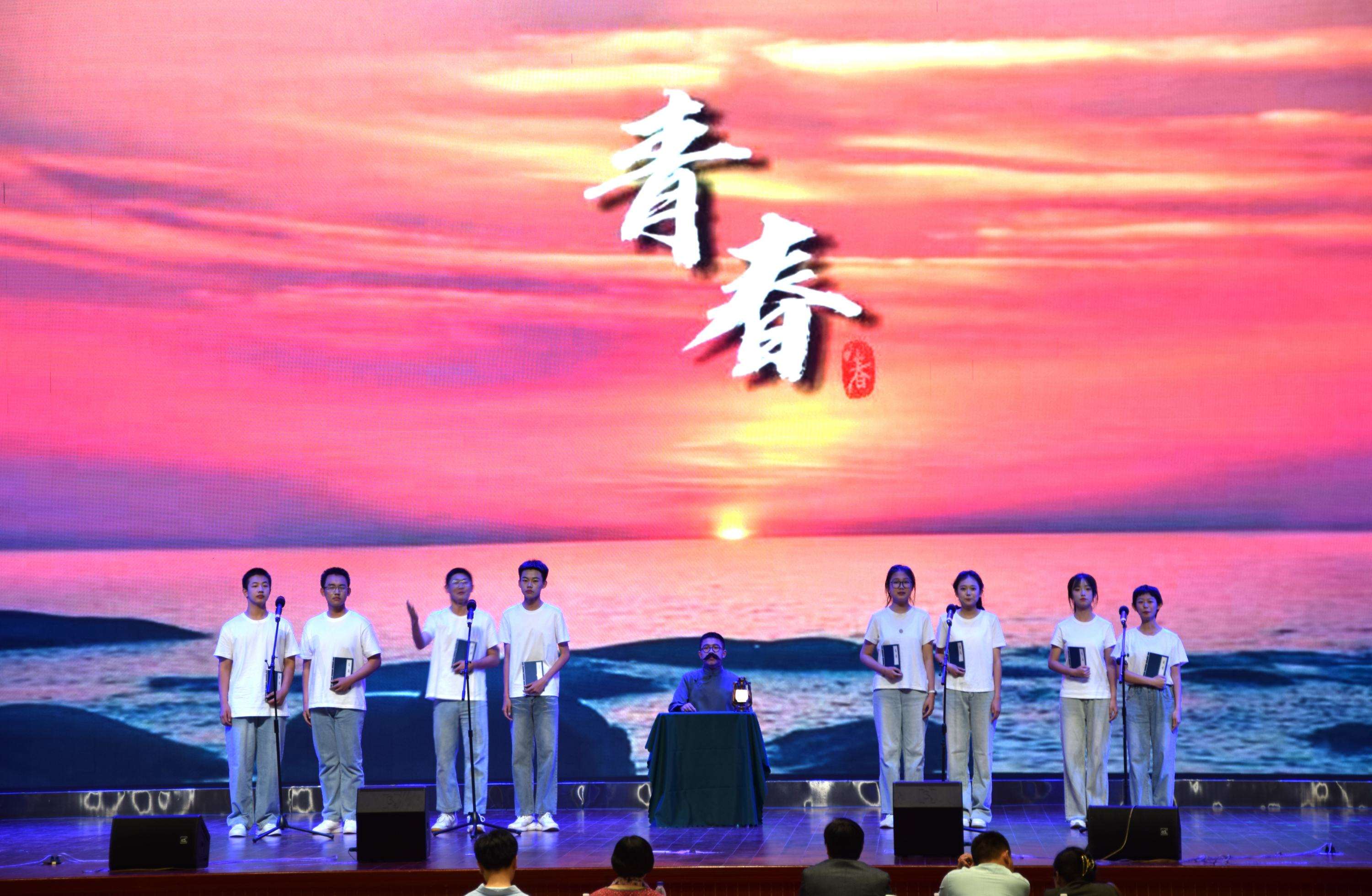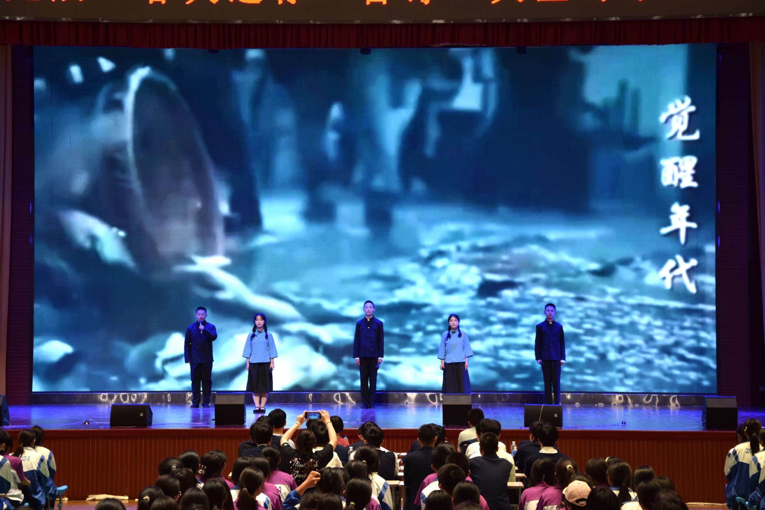 《青春中国》《觉醒年代》《百年交响》《青春的油灯》等节目献礼青春,献礼祖国,精彩纷呈,尽显凌云之志、青年担当。同学们的朗诵掷地有声,每一句都饱含对民族的期许与热爱。原创诗朗诵《春山百载·淄州六调》,展一中四季风貌与百年发展,在学子们的深情吟诵中,淄博一中的辉煌画卷徐徐展开,抚今追昔,令全场师生激动不已。