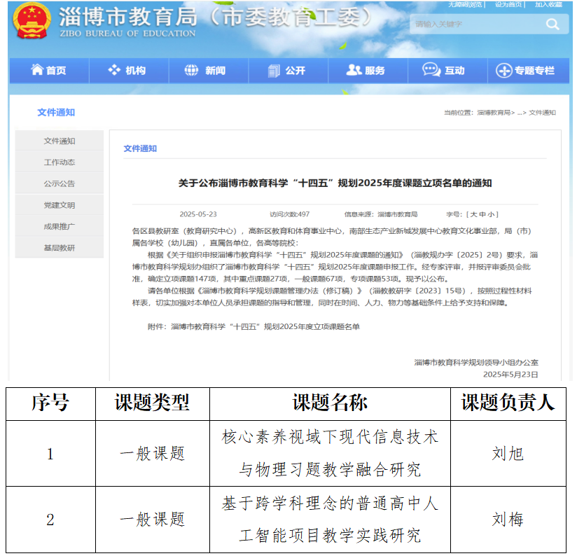 近日,淄博市教育科学“十四五”规划2025年度课题立项评审结果揭晓,我校两项课题成功立项。
