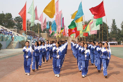 仪式在庄严雄壮的《中华人民共和国国歌》中开始,陈贞凯校长郑重宣布:淄博一中第九届体育节田径运动会开幕!在欢快悠扬的乐曲声里,裁判员和运动员踏着整齐的步伐,喊着响亮的口号,依次进入会场。
