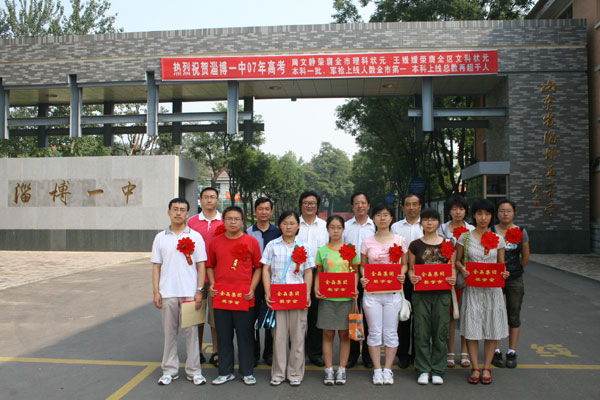 会议在庄严雄壮的《中华人民共和国国歌》声中开始。李诚校长宣读《淄博一中关于表彰周文静等六名同学的决定》,向考入清华大学的周文静、苏善诚、孙小凡、张新雨、王倩和北京大学的王媛媛6名同学颁发“淄博一中优秀学子奖学金”,以表彰他们在学习方面的引领和表率作用。
