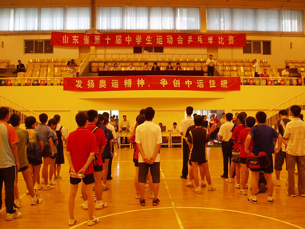 受市教育局指派,由我校组队,陈贞凯校长担任领队、丁树川、石志和老师担任教练的淄博市中学生乒乓球队参加了8月14~18日在济南师范学校举行的山东省第十届中学生运动会的乒乓球比赛。历时五天的角逐,我校乒乓健儿不畏强手,敢打敢拼,在所有七个单项的竞争中六个单项进入前六名,取得团体总分第三名,圆满完成了市局下达的任务。据悉,该成绩是我市历届参加该项比赛的最好成绩。我校体育中心主任丁树川老师荣获最佳教练称号。