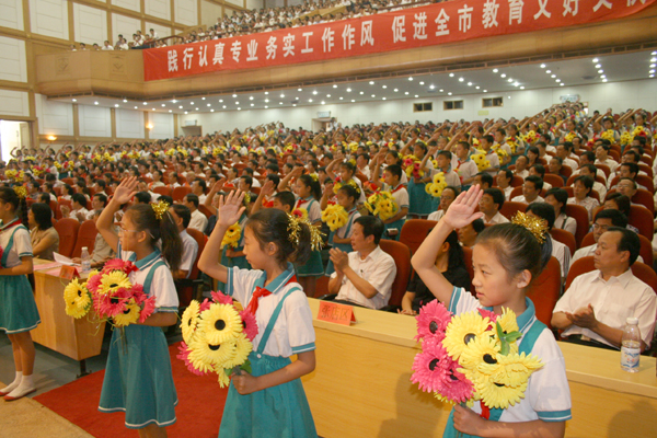 大会在庄严的国歌中开始,全市少先队员代表献辞,会议宣读了我市获全国教育系统先进集体、模范教师、优秀教师、优秀教育工作者和山东省优秀教师、优秀教育工作者、师德建设先进集体、师德标兵名单;表彰了市优秀教师、优秀教育工作者和优秀班主任。