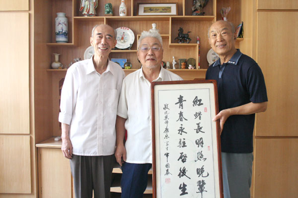 我校初6级老校友、全国优秀教师、全国中师书法教育研究会会员牛国泰将自己的书法作品送到母校,向全体老师祝贺教师节,并亲切看望了当年的班主任朱永坤老师。