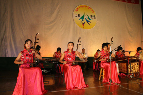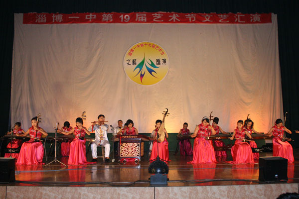 晚会在精彩的民乐合奏《赛马》《彩云追月》中拉开帷幕。这是刚刚组建不久的淄博一中民乐团的首次亮相,团员以初一、初二年级学生为主,在短短的三个月时间里,同学们充分利用课外活动时间,积极排练,在发挥个人特长的基础上,较快地实现了乐队整合,无论规模、条件,还是演出质量,都达到了一定水平,成为我校一支新的艺术力量。