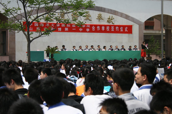 刘英学副书记作重要讲话,代表市教育局向中国海洋大学国际教育学院合作学校成功落户淄博一中表示祝贺。他指出,淄博一中领导视野开阔,决策超前,国际教育交流与合作工作走在了全市前列,这次与中国海洋大学国际教育学院的合作是优势互补、强强合作,必将进一步拓宽学生出国留学的渠道,满足更多学生走出国门、选择更多国家的需要。这是淄博一中学生的福音,也是淄博、博山孩子的福音。