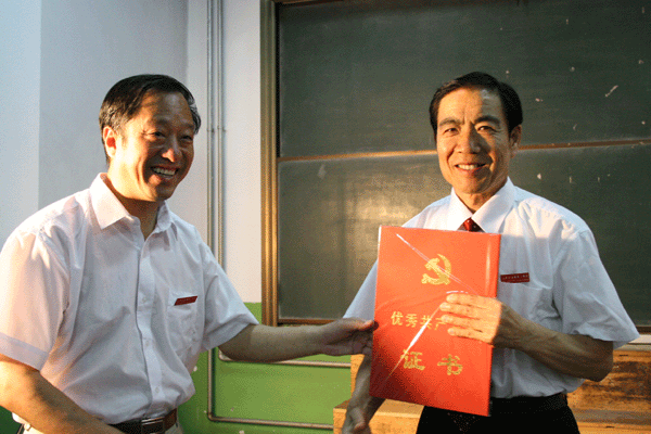 比赛前进行了新党员宣誓、老党员重温入党誓词仪式。陈贞凯校长、司志宏书记为获得市委、市教育局党委表彰的先进个人和集体颁发了荣誉证书。