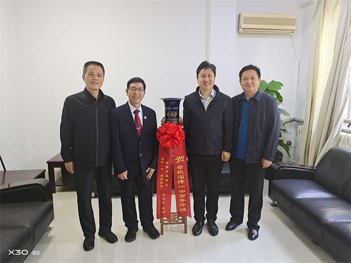 9月22日,我校高78级校友岳恒学回到母校,向学校捐赠精美景泰蓝锦鸡花鸟瓶,祝贺母校百年华诞。学校党委副书记、校长王波代表学校接受捐赠。