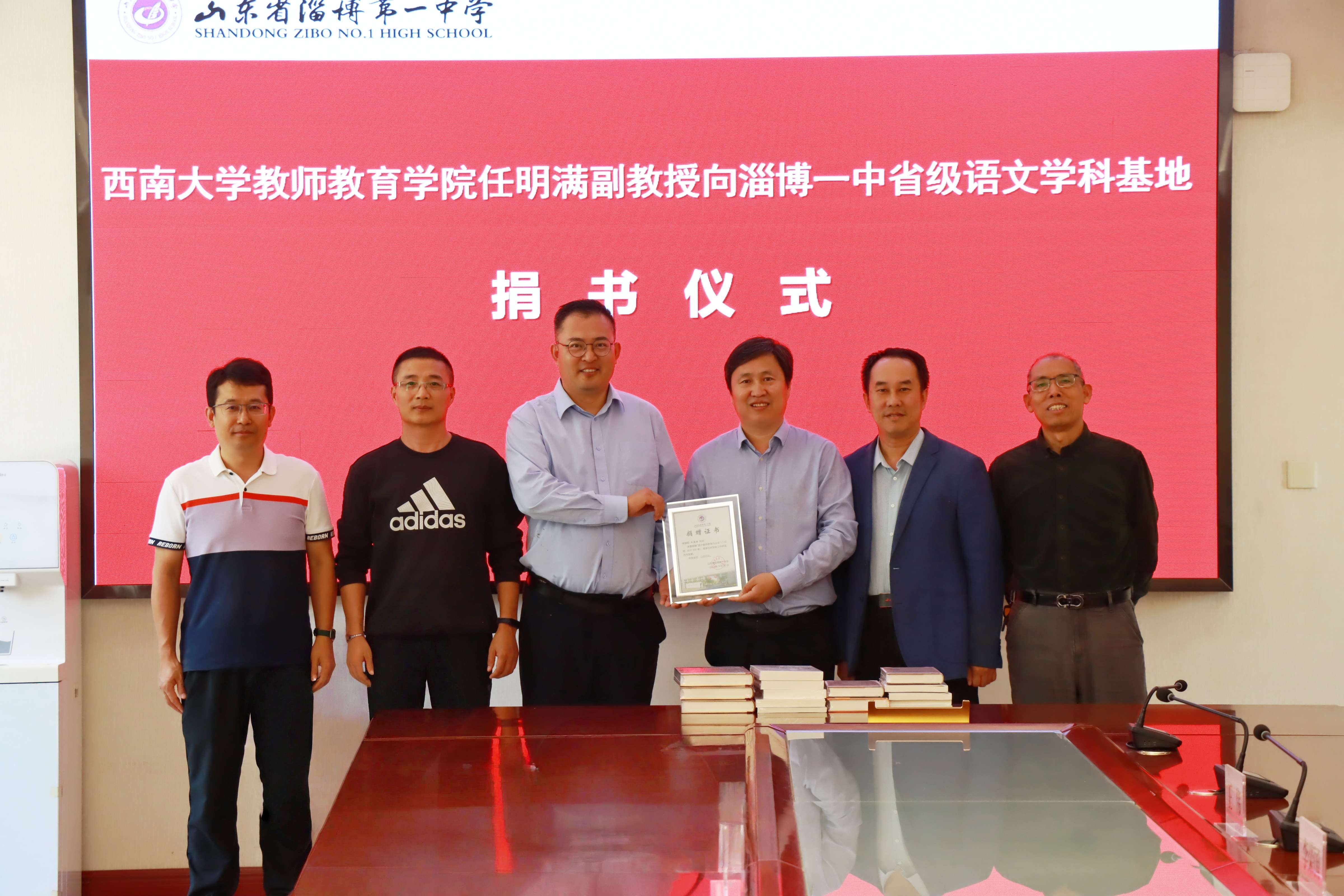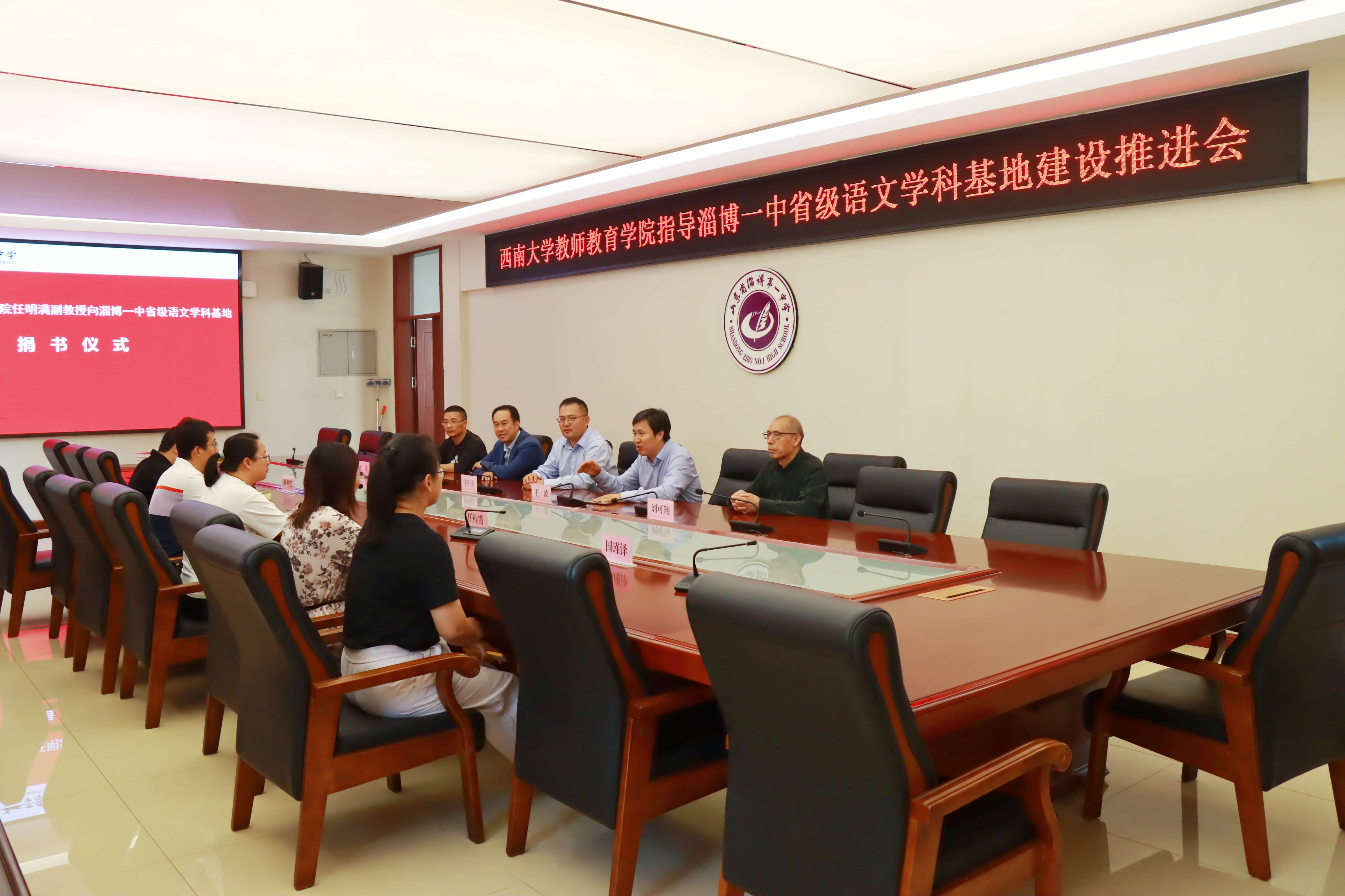 9月30日,西南大学教师教育学院指导淄博一中省级语文学科基地发展推进会在我校召开,同时举行图书捐赠仪式。校长王波、副校长李荣国及语文教研室骨干教师参加。